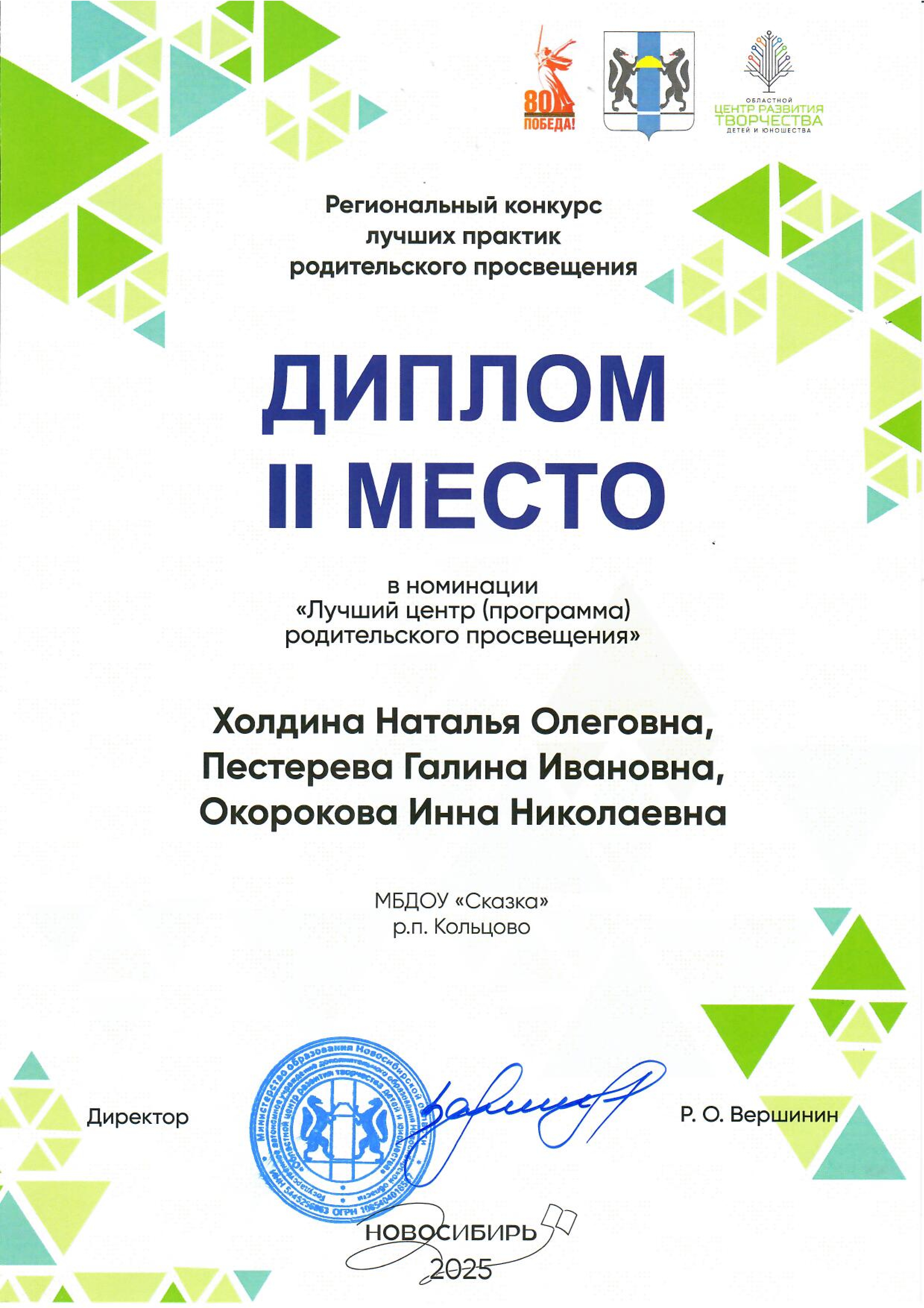 Диплом 2место региональный конкурс Лучшие практики родительского просвещения