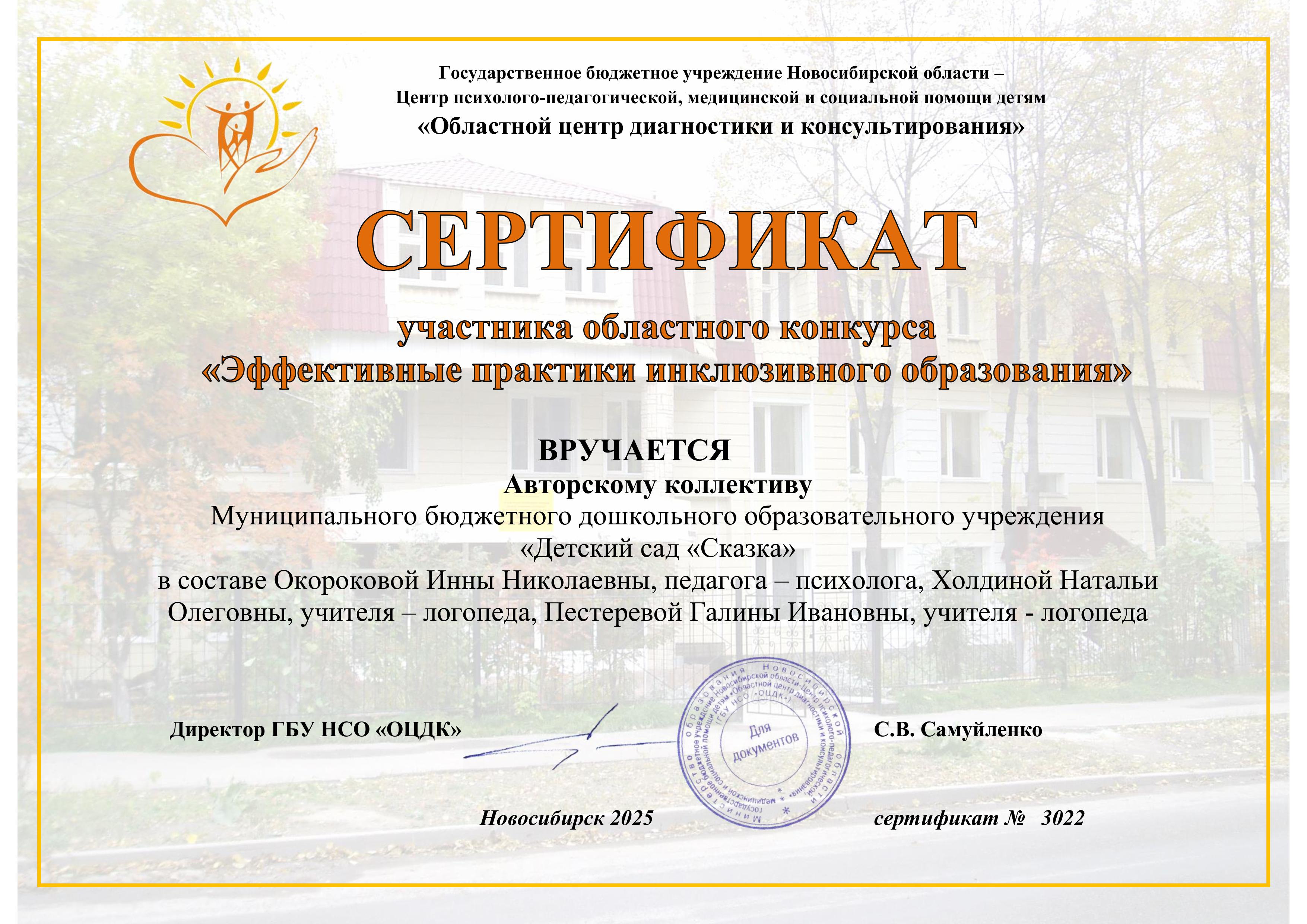 Сертификат участника "Лучшая методическая разработка по краеведческому образованию детей в ДОО Новосибирской области 2021